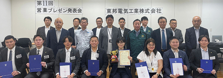 営業研修にて習得したスキルを実践現場にて発揮するため、更なる提案営業スキル向上の具体的な取り組みの一つとして、事業所ごとでのプレゼンテーション力を競う「営業プレゼン発表会」を実施しております。